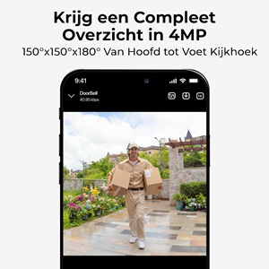 - 2K/4MP (2048x2048) resolutie, met een unieke beeldverhouding van 1:1 en een beeldbreedte van 150x150x180 graden heb je van top tot teen uitstekend zicht bij de voordeur