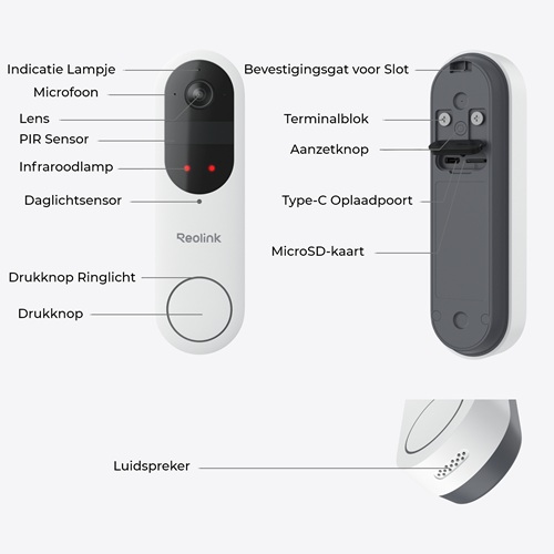 - Verschillende belopties. Of je nu kiest voor een Reolink Chime, een traditionele mechanische bel, Google Assistent of de Reolink Hub, je bent ervan verzekerd dat deze deurbel een aanvulling is voor je huis