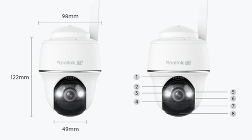 - Camera met langdurig werkende, oplaadbare batterij. Kan ook gekoppeld worden aan een Reolink zonnepaneel 2 (6W, niet inbegrepen);