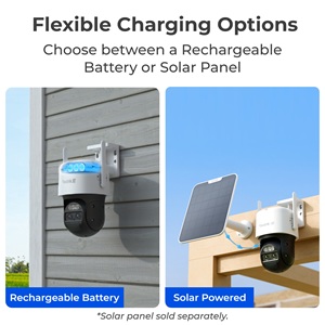 - De G770 heeft een langdurig werkende, oplaadbare batterij maar werkt ook met een Reolink zonnepaneel (niet inbegrepen), voor continue stroom;