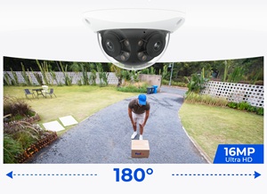 IK10 vandalismebestendige PoE domecamera met 16MP resolutie, motion track en 180° panoramisch zicht! Elk detail vastgelegd in 16MP. De dubbele 4K sensoren en quad-core SoC (chip) van de Reolink P757 produceren samen ongelooflijk scherpe beelden, je mist niets. Legt kentekens van geparkeerde auto's duidelijk vast tot 16 meter afstand!