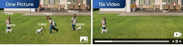 - Slimme detectie, geen maandelijkse kosten. Door geavanceerde algoritmen onderscheidt de camera op slimme wijze bewegingen van mensen, voertuigen en dieren van andere objecten, minder kans op vals alarm.