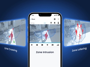 - Perimeterbeveiliging: Ontvang AI-gestuurde waarschuwingen voor lijnoverschrijding, inbraak in een zone of rondhangende figuren in een zone. Nauwkeurige bescherming van kritieke gebieden;