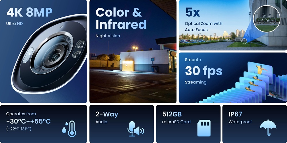 4K/8MP resolutie | Kleurennachtzicht | Slimme gebeurtenisdetectie | Perimeterbescherming | Video zoeken met AI
